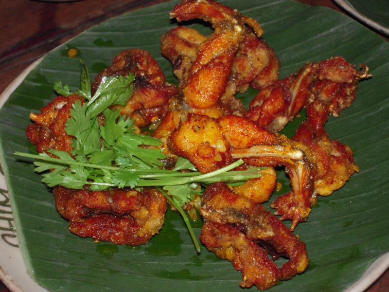 つまみも面白いメニューがオンパレード。蛙の唐揚げ(写真上)や淡水ウナギ巻物グリル(写真下)、ハトの丸揚げ・・・。何回か通わないと、とても制覇できない。