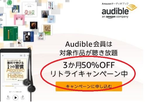 「聴く本」というサービスは良いサービスで、私も購読していた。ただしばらくすると、読みたい本がなくなったので、解約した。すると、3か月の半額「リトライキャンペーン」案内がやってきた。半額ならかなり安い…