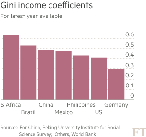 中国はすでに、世界でもっとも貧富の格差が大きい国家の一つになった。1%の富裕層世帯が国の3分の1の富を独占している。社会における所得分配の不平等さを測る指標であるジニ係数は0.49に達し、世界で南ア…