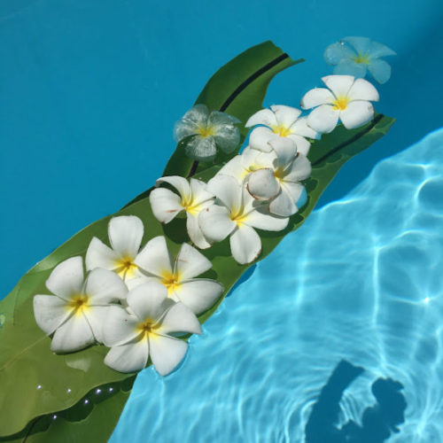 我が家の庭は、プルメリアが満開。 落花流水。――散り落ちる花と流れる水。花が流水に散れば、水もこれを受け入れ花を浮かせて流れてゆく。男に女を慕う心があれば、女もまた情が生じて男を受け入れるという男…