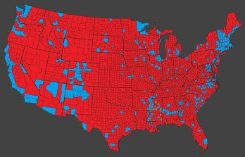 ● トランプ赤の圧勝 トランプ赤の圧勝。アメリカの地図に地方(赤)と都市圏(青)の区分をするなら、ずばりその通りだ。カリフォルニアが特に面白い。中国共産党がかつて政権獲得に成功した「農村から都市を包…