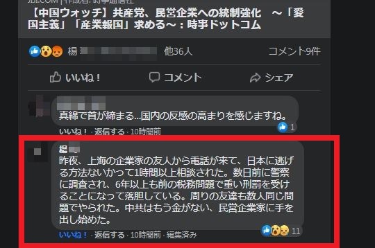 私のフェイスブックに昨日(10月11日)、在日中国人友人の楊氏から書き込みがあった――。 穏やかな話ではない。中国共産党はいよいよ民営企業に政治的統制に乗り出しただけでなく、経済的収奪も着々と進め…